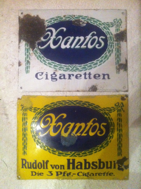 Meine Uroma hat fast 120 Jahre lang Xanthos geraucht, es ist mir deshalb enorm wichtig, genau diese Schilder zu kriegen, deshalb biete ich Dir unschlagbare 150 Schweizer Franken. Also Raukauf bevor,sie drin sind. Bedenke, dass die Schweizer Franken auch dann noch eine ungebrochene Kaufkraft haben werden, wenn der Euro schon längst in griechishen Kanälen versickert sein wird.