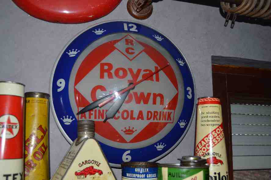 Hi, it’s John from Liege ( Luttich BE ) I have and old original electric advertising clock for american soda royal crown cola, I’m interested to trade it for a petrol or automobile original sign, porcelain sign or tin sign ( emailleschild – blechschild ) from brand : texaco, caltex, shell, BP, gulf, mobiloil, veedol, castrol, ford chevrolet, …