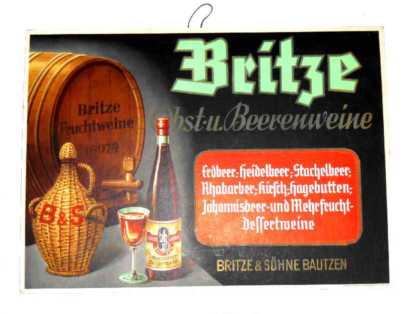 Angebot: Altes Reklameschild Britze Obst und Beerenweine, Bautzen um 1925, Britze und Söhne