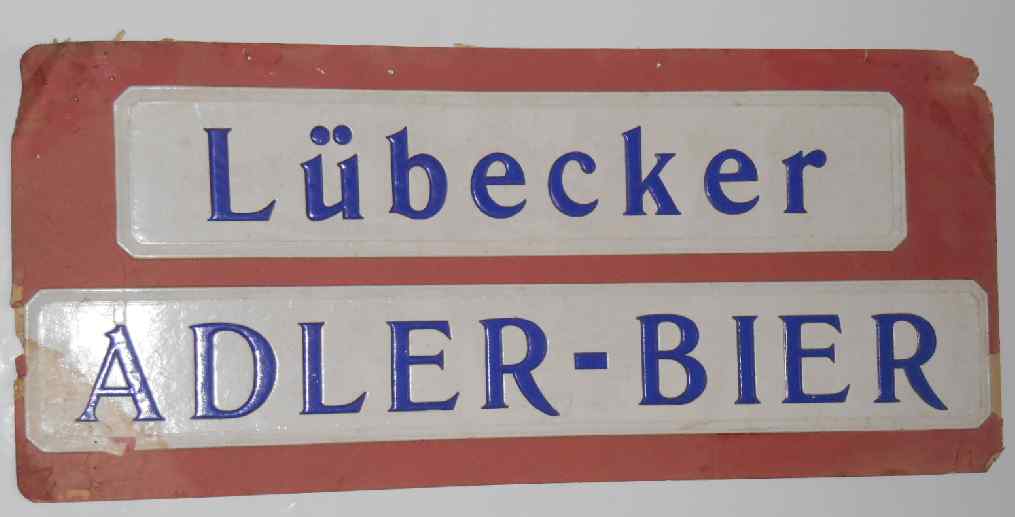 Angebot: Vergessene Brauerein, Altes Reklameschild, sehr selten, Lübecker Adler Bier, Lübeck um 1915