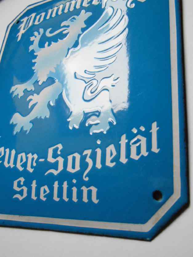 Angebot: Emailschild, Zustand 0, Pommersche Feuerversicherung, Stettin um 1930