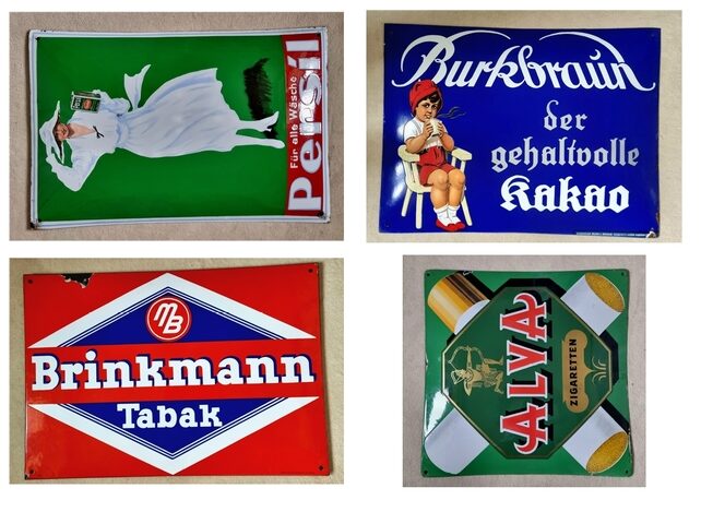 aus dem Nachlass meines Großonkels und Gemischtwarenhändlers habe ich vor ca. 35 Jahren u.a. auch diverse Emaille-Werbeschilder bekommen.