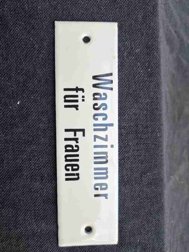 Das Schild erlaubt dem Betrachter einen guten Einblick in vergangene Zeiten. Das Spiegelbild im frisch gebohnerten Fußboden finde ich super, auch die schöne Jugendstiel Ornament Tapete.