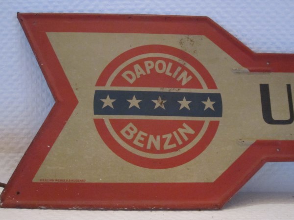 Mein wirklich seltener und tadelloser Dapolin Benzin Blechpfeil. ca. 60 x 25cm