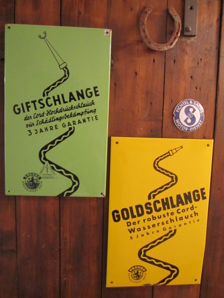 Beide Schilder 50er Jahre. ca. 37 x 57. Sehr guter Zustand und Glanz. Es gab noch eine Wetterstation von der Goldschlange. Mehr Schilder sind mir nicht bekannt.