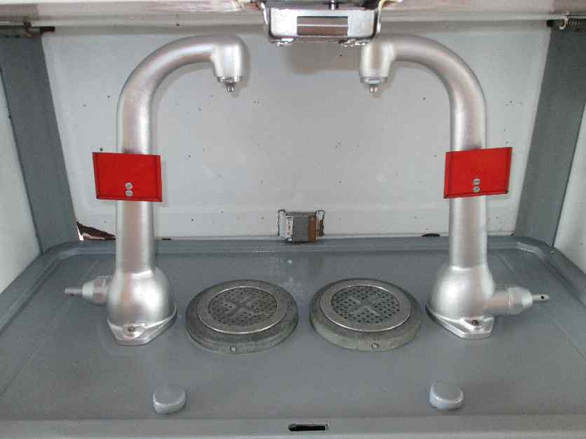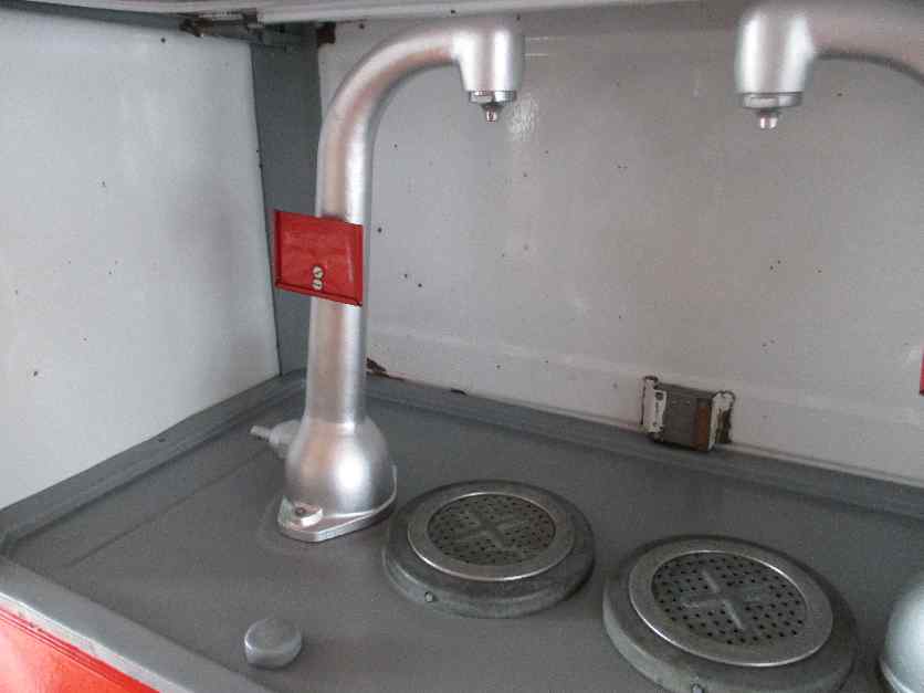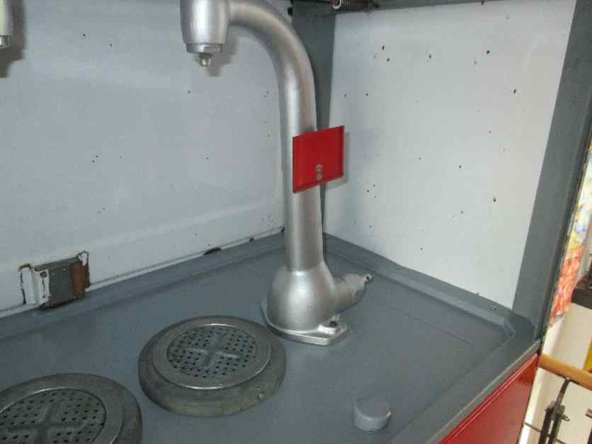 Vor einer Woche ja schon das gereinigte Kabinett vorgestellt. Nun ist auch das Innenleben soweit fertig. Es fehlen nur noch die 2 Pumpenhebel-die muss lasse ich gerade neu verchromen. Schlüssel ist auch fertig-Stahlschlüssel als Spezialanfertigung 😉 Lässt sich jetzt auch wieder schließen.
