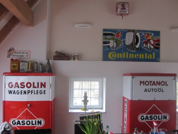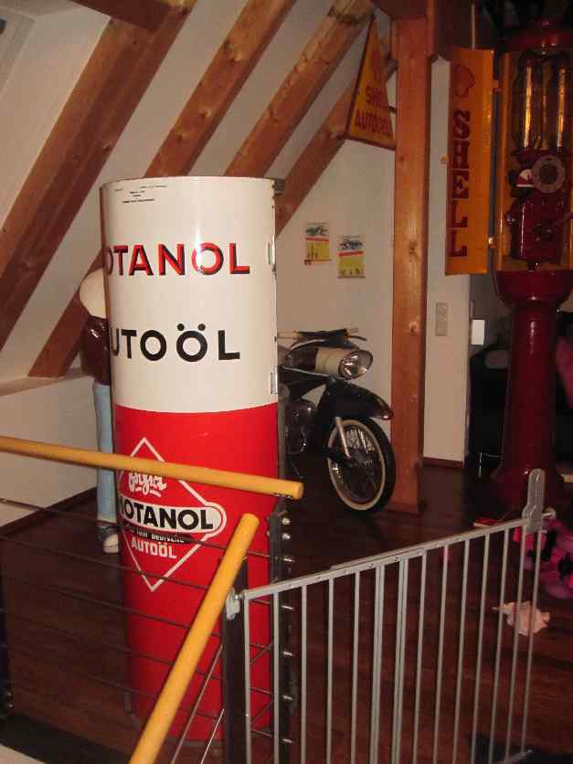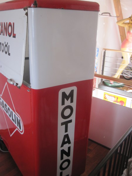 Am Mittwoch endlich den schon im Dezember zugesagten Shell Handkarren abgeholt. Wirklich feiner Originalzustand. Zudem noch das 30er Ölkabinett etwas gepimpt. Hier muss ich noch nur noch das obere Abschlussblech mit dem richtigen Aufkleber versehen.Dem Glasglobe fehlt noch der Shell Schnurschriftzug.