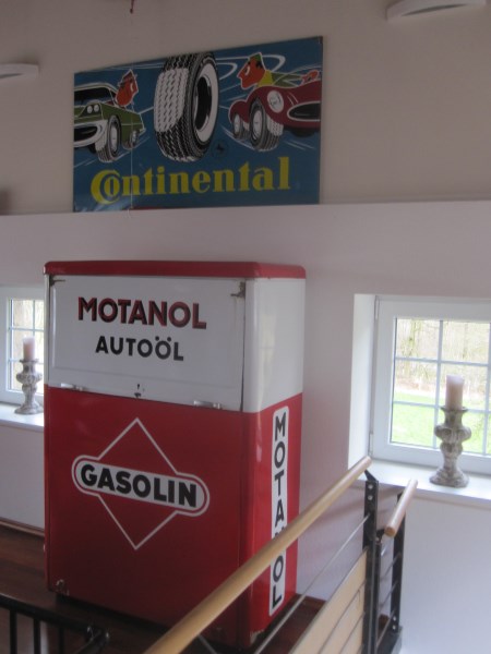 Heute einen kleinen Ausflug nach Fehmarn gemacht. Wunderschönes Wetter, ein plärrendes Kind und die Frau im Schlepptau. Gar nicht die Absicht gehabt nach Reklme zu suchen. Nach einem kurzen Rundgang an der rauhen Ostsee ging es zurück zur Ferienwohnung. Doch halt!! Sind wir nicht vorhin an einer alten Scheune mit Schildern vorbeigekommen? Nach kurzer Suche wurde besagte Scheune gefunden-leider nur neuzeitige Schilder an dem alten Holztor. Drinnen ein Geschäft für Rasenmäher und Gartenbedarf. Im Augenwinkel hinter einer alten Leuchtreklame viel mir dann doch noch was ins Auge: