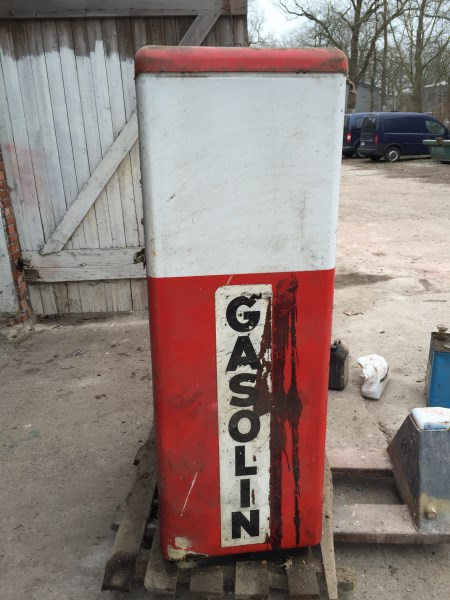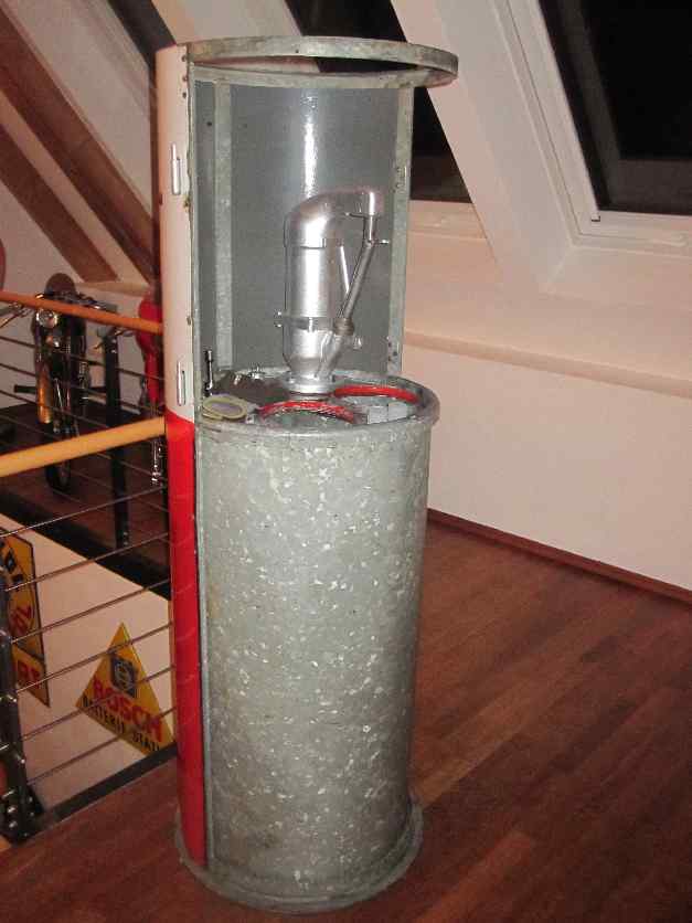 Die Säule ist bis auf den Schlauch und die Zapfpistole komplett. Aber Dank einer sehr netten Person schon abholbereit 😉 Die Serviceklappe an der Front ist jetzt leider nicht original. Hierfür gab es ein Gussblech mit Muschel drauf. Wer eins hat, bitte melden…