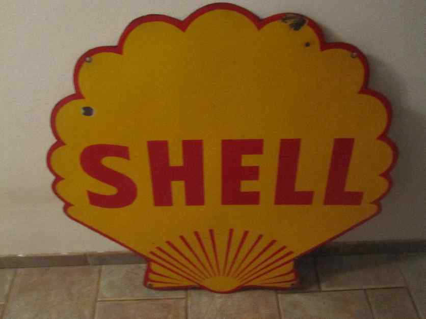 Shell Pumpe Hinweispfeil in Blech ist auch