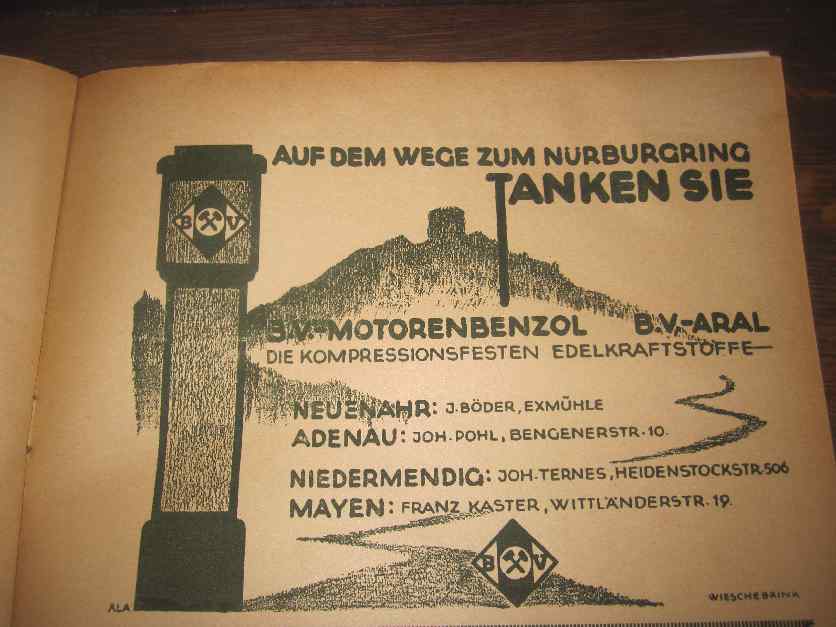 Es handelt sich um das original Programmheft von der Eröffnungsfeier des Nürburg Rings am 18. und 19. Juni 1927. Der Zustand ist einwandfrei. Bevor es gerahmt wird, habe ich nochmal die besten Reklameabdrucke fotografiert und stelle sie hier online für Interessierte! Bis dato von mir ungesehene Werbung dabei.