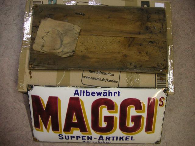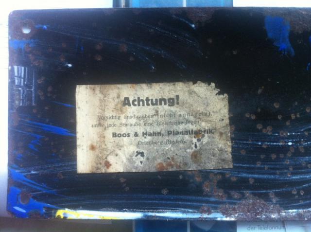 Wie es manchmal so im Sammlerleben ist oder sein sollte,kam heute,kurz vor Feierabend,ein netter Kunde seine Brille abholen.Wir hatten mal vor einiger Zeit auch über Schilder gesprochen,und dies und das.Und vorhin im Türkenkoffer was metallisches dabei,ziehts raus und…genau.Ein extrem seltenes Teil aus WR mit Schloß drauf und eben der Burgmühle.Ein Schokoladenteil vom Feinsten,zwar nicht vom Zustand,aber sehr selten.Lag in einer alten LKW-Garage,inkl.viel Teer und Öl im Boden.Danke an TW!