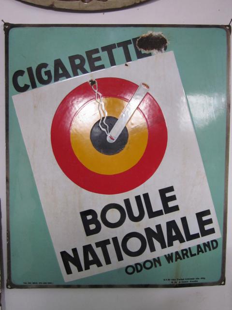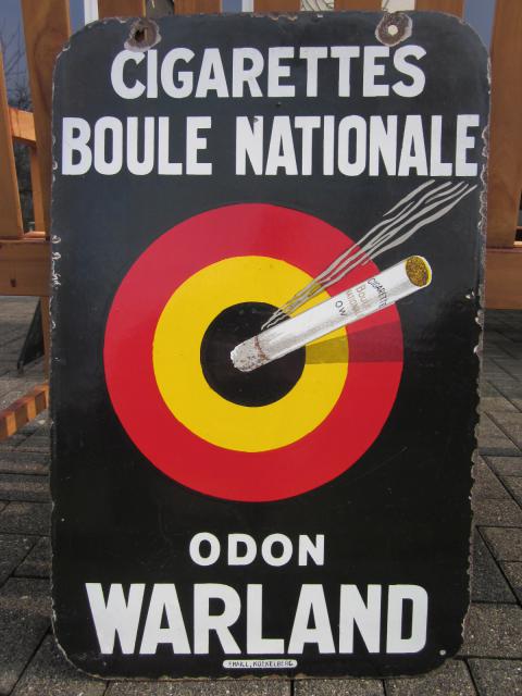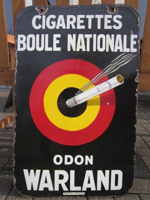 … jedoch recht seltenes Format, denn dieses doppelseitig emaillierte belgische Zigarettenschild im Format 70 cm x 45 cm stammt von 1926 und war früher mal an einem Metallrahmen als Ausleger (ab dem Jahr gab es die Steurnummern auf den belgischen Schildern) – auch ein Fund von der gestrigen „Saisoneröffnung“ 😉