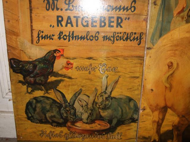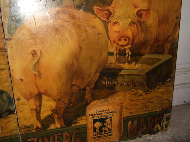 Hoffentlich wirds bald Frühling, das Groß- und Kleinvieh wird schon langsam gaaaanz ungeduldig und kann nur mit Brockis Zwerg-Marke bei Laune gehalten werden….Bauernhof-Fund nicht von Pappe. Doch !! 2 teil.-Pappaufsteller 1,20 x 1 m, um 1920/1930