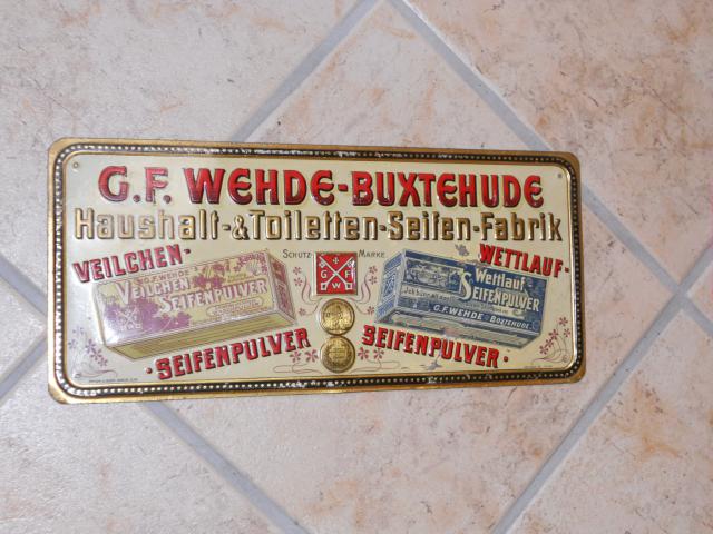 Ein Gedanke zu „Buxtehuder Hamburger Seifeschild aus Prägeblech- Wettlauf Seifenpulver ick bin all door