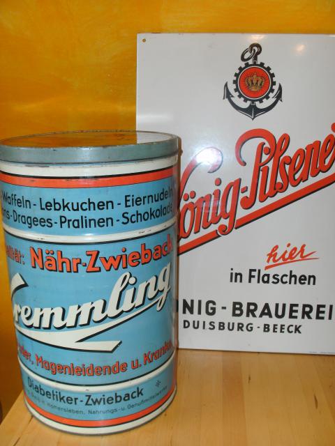 … zum Flohmarkt zu fahren – dachte ich heute früh, als ich aus dem Fenster schaute und den Schneeregen fallen sah. Na ja, allerhöchstens rüber in einen kleinen Belgischen Ort, wo der Flohmakt in einer Viehmarkthalle sattfindet – von Langeweile getrieben also los ohne jede Erwartung. War auch dort nicht viel los – nur Hälfte der Plätze belegt und sehr wenig Besucher. Viel Kitsch und das übliche Haushaltsauflösungszeugs, nur wenig Stände mit schönen alten Sachen – doch da lacht mich ne alte Blechdose an. Ein schöne 20er Jahre Gaede Scholdoladen-Blechdose aus Poznan (Posen, Polen) ca. 35 cm hoch. Na bitte, hat die Tour trotz Schneeregen doch Sinn gemacht – bin zumindest zufrieden heim gefahren 🙂