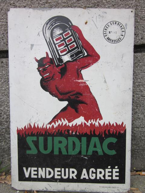 Die kleine Version des Atlas Blechschildes finde ich wesentlich schöner und wirkungsvoller, als die gerade bei Ebay angebotene große Version. Eines der Blechschilder, die von ihrer Wirkung mit Emaille locker mithalten können. Gewölbtes und geprägtes Blechschild (50 cm x 35 cm) aus Belgien mit Steuernummer von 1938 – hing viel Jahre an meiner Wand und ist nun zu haben 😉
