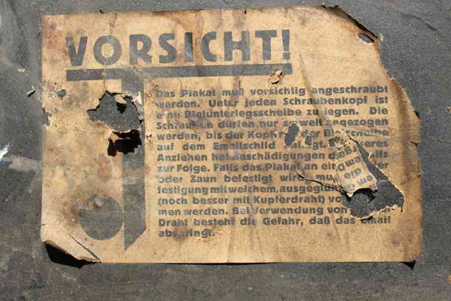 Auch für mich hat sich das Aufstehen heute gelohnt. Heute ein St. Vitus bekommen, Stettin um 1920, 20 x 40 cm, Torpedo-Email, Frankfurter Emaillir-Werke, Neu-Isenburg. Nettes, kleines Likörschild aus dem Atelier Leroi. Nur kleine, übermalte Eckschäden, ansonsten schöner, hochglänzender Zustand.