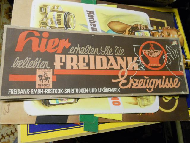Hier wurde vor kurzem eine alte Treppe in einem uralten Haus (1749) abgerissen. Unter dem Mittelpodest der Treppe wurde ein Werbeschild gefunden. Maße 39xm x 53cm Das Material ist so ne Art Pappe/Holz.