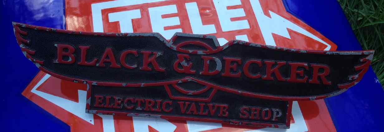 dieses wohl uralte guss black & decker schop emblem bekam ich aus dem alteisen….. witziges teil noch nie gesehen….. ist doch eher usa mässig… wie ein harley schildchen .-), weis jemand was über das teil….
