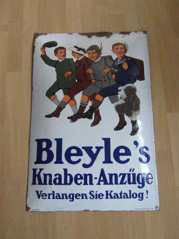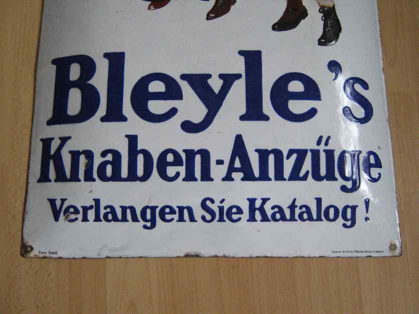 Die Sendung mit diesem Schild wurde heut wiederholt. Was mir aufgefallen ist dabei, das Bleyle Schild wurde unten beim Experten kaum beachtet bzw auch kaum im ganzen gezeigt..das gleiche dann oben..das Bleyle Schild lag flach auf dem Tisch und die Kameras, sowie die Händler diskutierten fast nur über das Vivil Schild. In meinen Augen war das alles so gewollt und einfach nur Taktik der Händler und des Senders. Bin mir sicher das alle wussten das dass Bleyle Schild eigtl viel interessanter und älter ist.