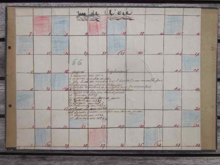 … wurde auch in schlechten Zeiten gespielt und wenn kein Geld da war, hat man sich eben selber ein Spielfeld auf einem Stück Pappe gebastelt. In diesem Fall wurden sogar fein säuberlich die Regeln dazugeschrieben. Dieses kuriose Spiel weckte heute auf dem Flohmarkt meine Aufmerksamkeit als ich einen Karton mit alten Photos durchkramte. Nett dachte ich und wollte es aber eigentlich zurücklegen, bis ich die Rückseite bemerkte, die ja ursprünglich die Vorderseite war …. und nun weiß ich endlich auch was bei Muskelkater hilft 🙂