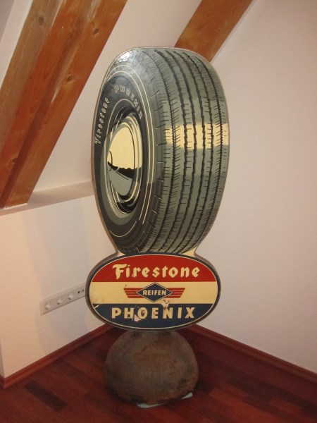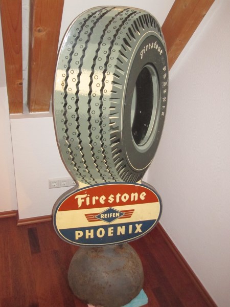 Handelt sich um einen Aufsteller von Firestone/Phoenix. Wohl 50er Jahre. Beidseitiges Motiv, jedoch unterschiedlich.