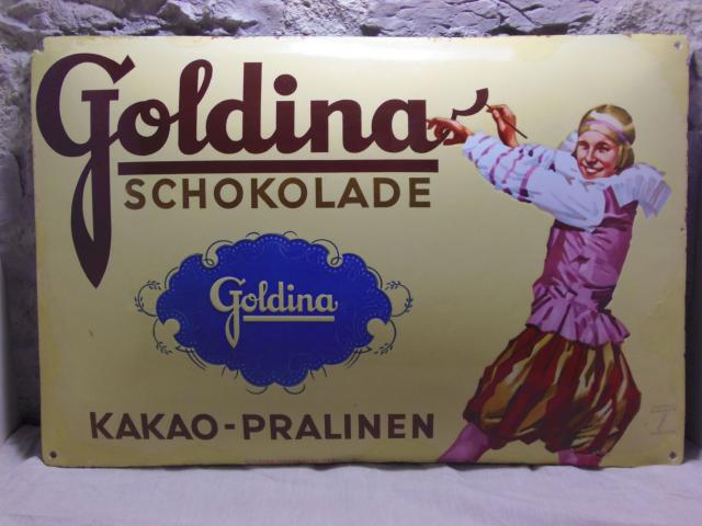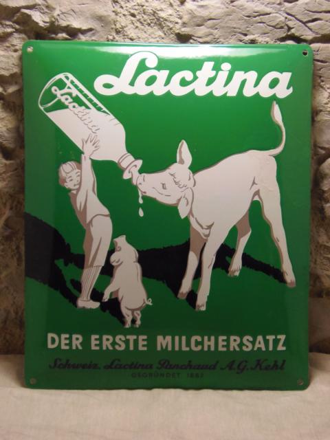 Hallo, hier nun die ersten Neuzugänge für dieses Jahr, ein Eckstein im Querformat (mit rosa Raute), ein Goldina Schokolade, ein Lactina, und, dank Jochen, ein Chlorodont-Streifen in 98×23. Was mich besonders freut: Das Lactina ist das allererste Schild meiner Lebensgefährtin (es sollte unbedingt was mit Tieren drauf sein!), welches sich als erstaunlich gut erhaltenes Exemplar mit nur kleinen Ausbesserungen entpuppte. Jetzt ist auch sie verloren… 🙂