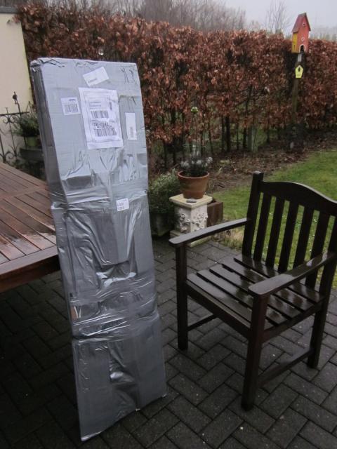 Au Mann, dass fängt ja nicht gerade mit nem Türschild an. Morgen werde ich Brecheisen, Schneidbrenner und Trennschleifer rausholen, um das Ding auszupacken und anschließend nen extra Müllwagen zur Abholung der Verpackung bestellen 🙂