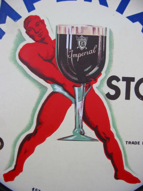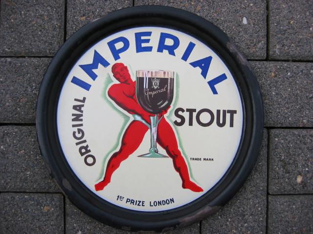 … und nun endlich auf einem belgischen Flohmarkt gefunden – das Emailletablett von Imperial Stout (Durchm. 32 cm). Ich glaube diese Art Emailletabletts gabs nur in Belgien. Sie werden oft unterbewertet, da es eben keine Schilder sind, wobei ich mir die Teile genauso gerne an die Wand hänge – für mich sind es quasi runde Schilder. Mittlerweile sind sind bei mir ein paar zusammegekommen und im Buch über belgische Schilder sind noch ein paar andere abgebildet.