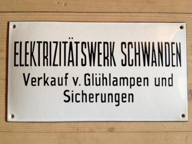 die elektrizitäts genossenschaft schwanden (emmental dort wo die bären kondesmilch herkommt) verkaufte nicht nur strom sicherte das ganze sondern liferte auch die enverbraucher produkte sprich glühbirne 🙂 past gut zu meine glühbirnen schilder gell michel 🙂