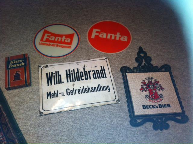 Schöne Franck Dose,zwei makellose runde Fanta Glasschilder,ein regionales Schriftschild aus Goslar und ne schwere Becks-XXL Fliese eingesammelt…
