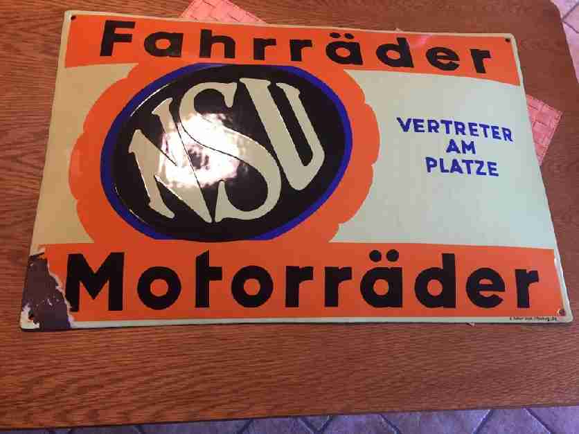 Hallo ich habe das Schild ähnlich mit zwei Kreise und einem Auto und Motorrad drauf. Signiert von Felix Krockert an wen kann ich mich da wenden. Kennen Sie sich mit Blechschildern auch aus, das es kein Emeille zu sein scheint.