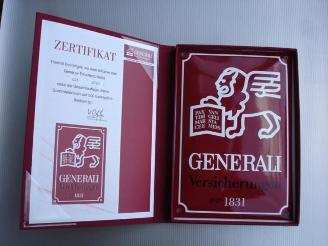 Generali mit Zertifikat Schreibe eine Antwort Hier ANKAUF Emailleschilder Blechschilder Automaten Unsere Angebote und Tagesauktionen Werben auf schilderjagd.de Hier eine Echtheitsanfrage stellen
