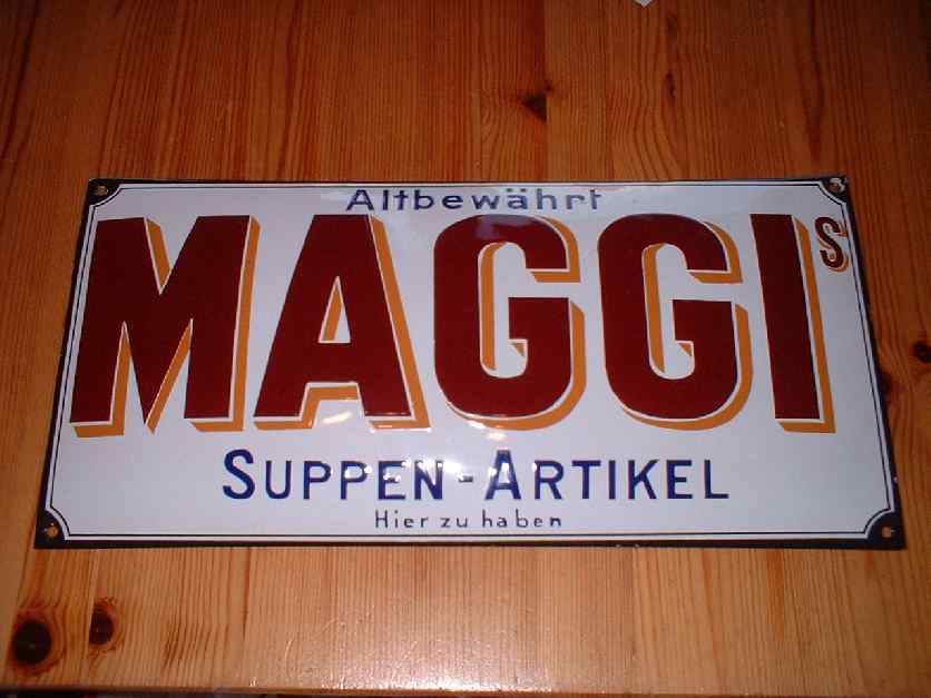Der Hauptgewinn in Form des dort gezeigten Maggi Emailleschildes!