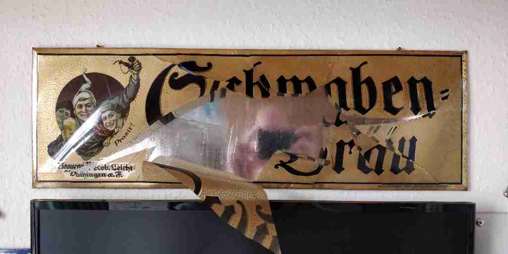 ich bin sehr traurig. Ein Schwabenbräu – Glasolinschild von Meise & Möcking