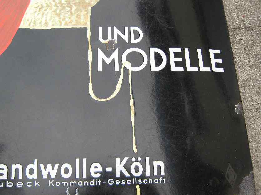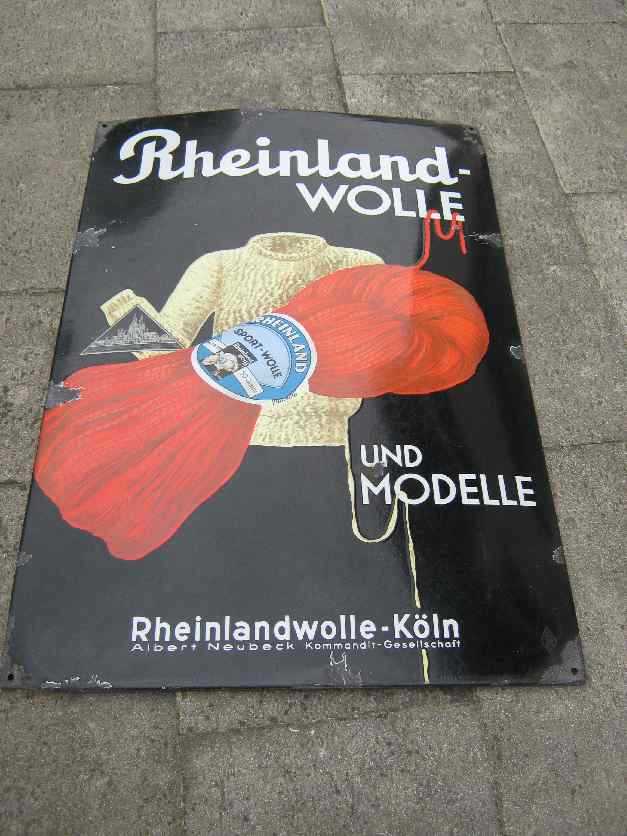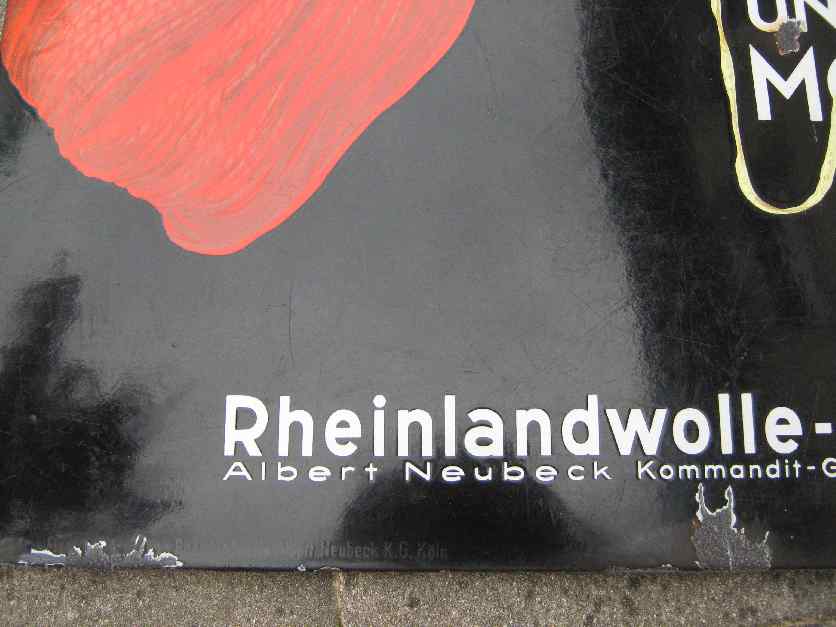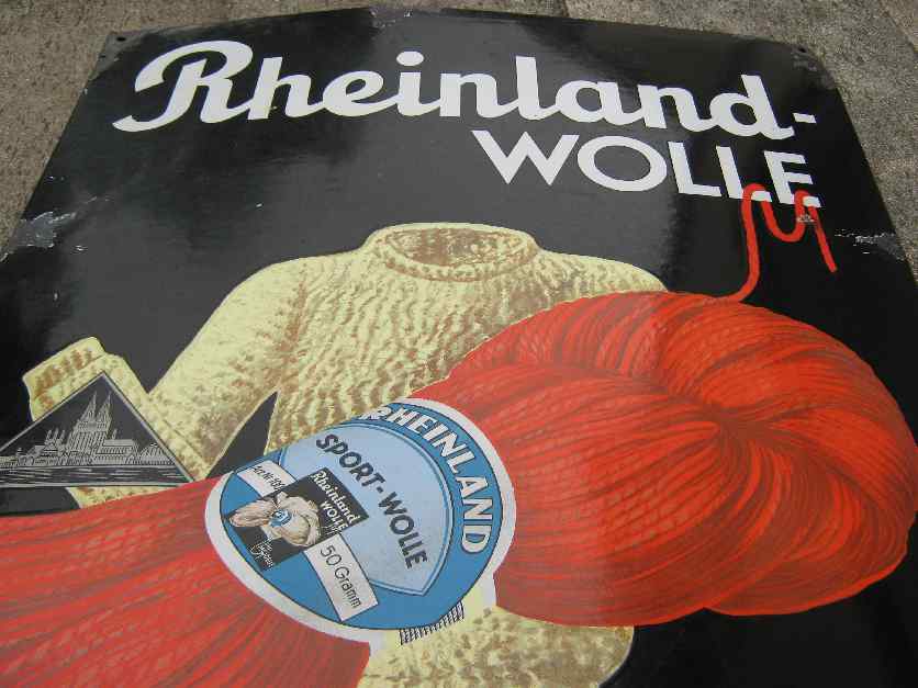 Seltenes Rheinlandwolle Köln in 120×80 cm. Die Farben sind noch sehr schön erhaltenen wobei auf der Oberfläche Kratzer vorhanden sind, der Glanz ist aber noch gut erhalten allerdings icht so schön wie bei dem Ozonil.