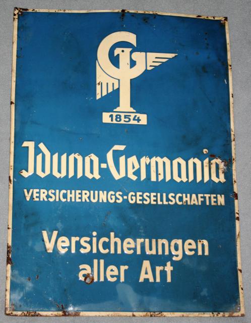 ich habe hier ein Blechschild von der „Iduna-Germania“, hergestellt von der Plakat-Industrie Berlin-Neuköln.