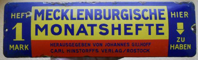 Seltenes Türstreifenzeitungsschild nur 35 x 8 cm nicht schön aber es gehört eben dazu und Hier zu haben steht auch drauf. und 1 Mark war aber teuer aber es war ja auch eine Monatsheft 🙂 Heute oder auch damals schon in Berlin oder München unvorstellbar die Meldungen eines Monates zu lesen, das war in Mecklenburg mal anders.  In der Ruhe liegt die Kraft.