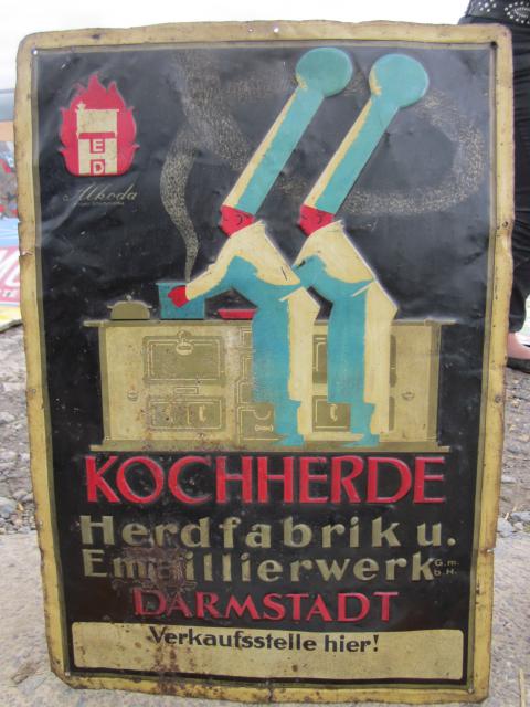 Die beiden „Bahnsignal-Kochmützen“ wirken hier als absoluter Blickfang;wenn die normale Kochmützen auf der Rübe hätten wäre es nur ein Kochherdeschild von vielen…so blieb/bleibt der Blick viel länger auf dem Schild!