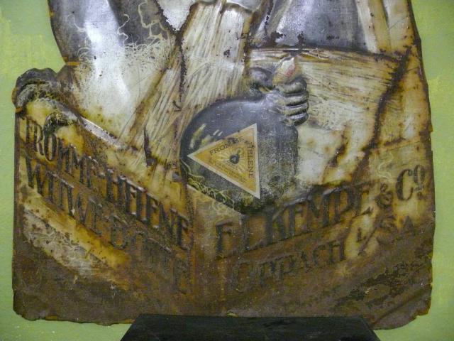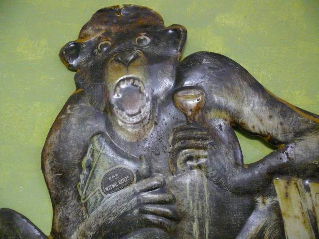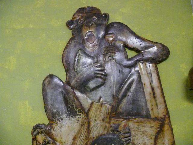 Hier sind die Bilder vom Affenschild.Hat sowas schonmal jemand gesehen oder kann etwas zum ca.Wert sagen?Unten sehr flugrostig und hinten wurde mal so ne Art Rostschutz aufgepinselt.Der Affe hat fast natürliche Grösse.