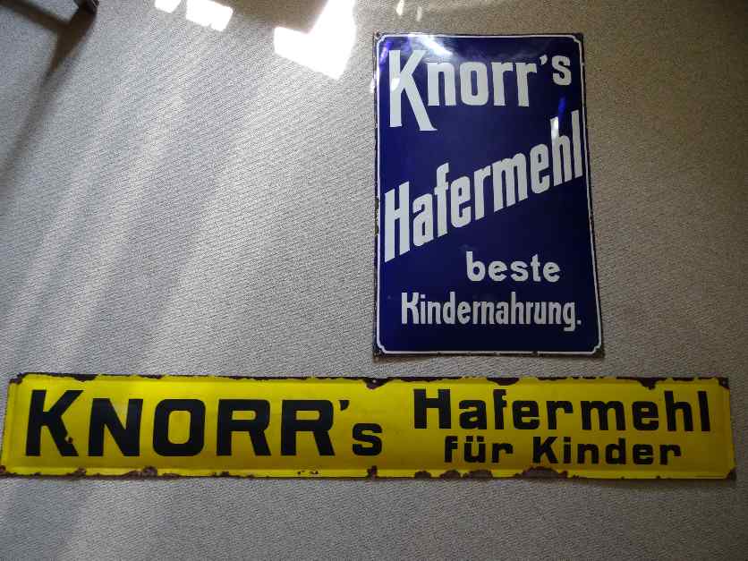 Sooo schlimm ist es doch gar nicht, beides schöne, alte Teile. Gewachsener, hochstehender Rost lässt sich gut mit einem Ceranfeldschaber entfernen, manchmal kommt darunter noch einiges an Emaille zutage, danach putzen. Klarlack ist m.E. nach nur was für absolut hoffnungslose Fälle, damit sieht kein Schild wirklich gut aus. Erste Wahl ist polieren, mit geeignetem Werkzeug/Poliermittel.