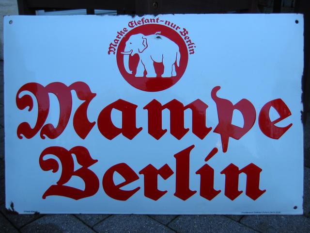 Jens und mc hatte ja schon Artikel über Mampe gepostet. Dazu paßt ein aktueller Fund von mir – 60 cm x 40 cm, gewölbt, Ursus Email, Emaillierwerke Gottfried Dichanz, Berlin S.O. 36