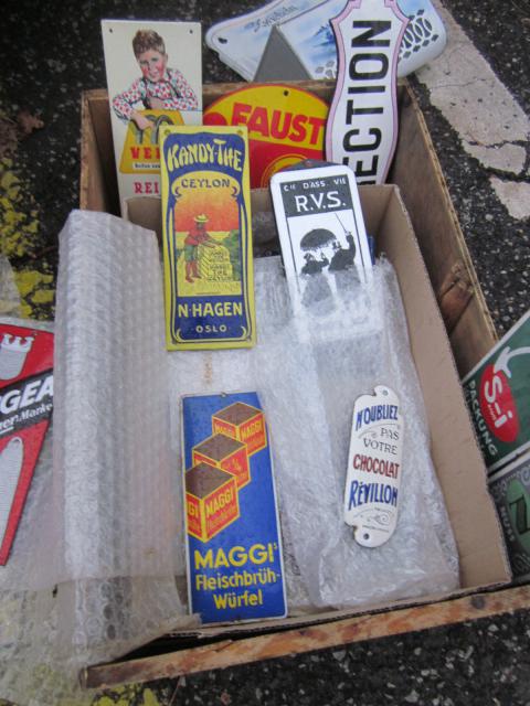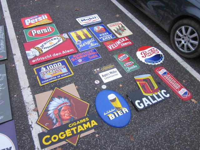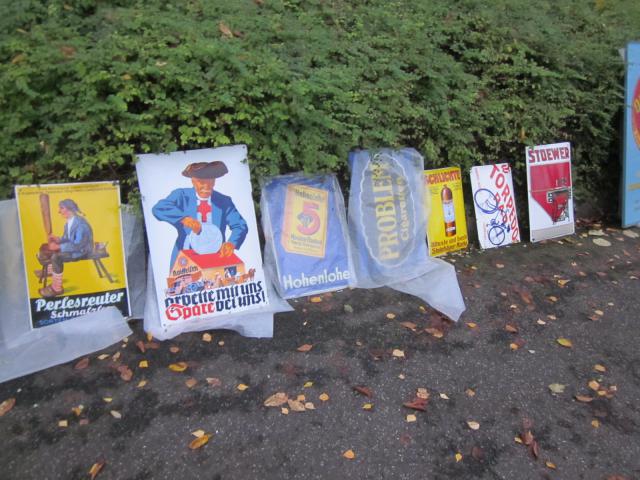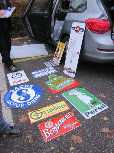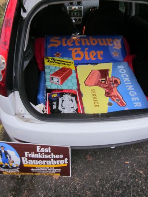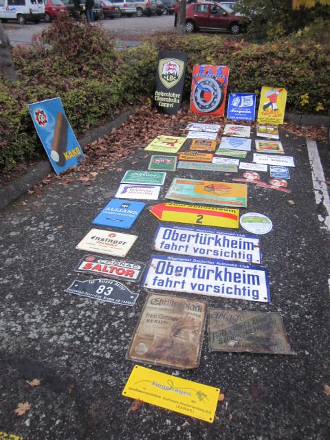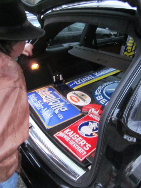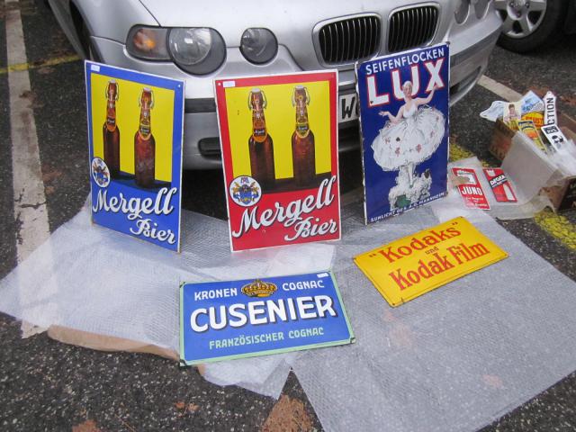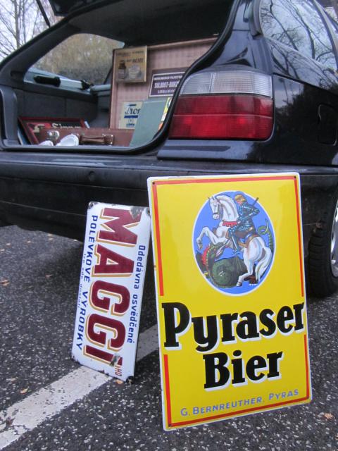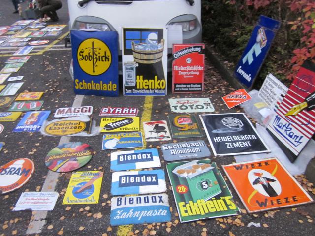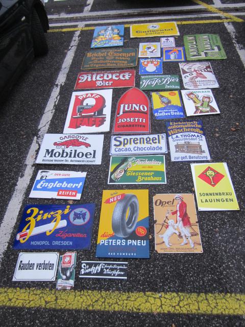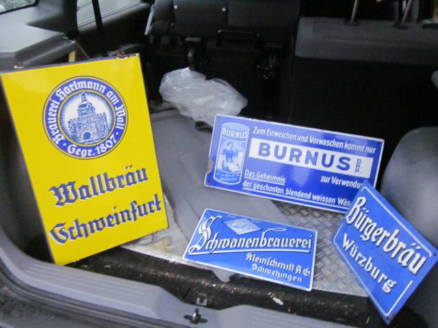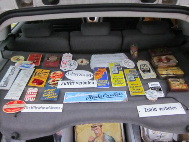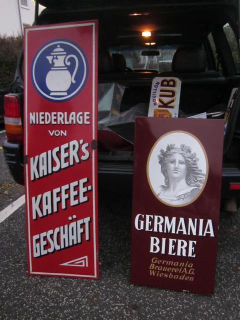 schöne bilder. danke dafür. wenn der besitzer des kofferraums mit den hohelohe- und kaisers-schild dies hier lesen sollte, würde ich mich über ein angebot mit bild und preis freuen. auch das an das wohnmobil angelehne klebebandschild für 450,– würde mich interessieren. danke für die mühe. marco