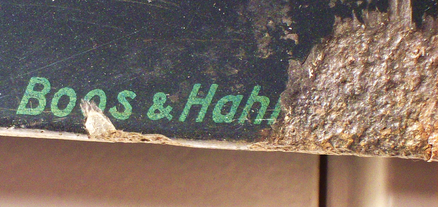 es handelt sich um ein zusatzzeichen von boos und hahn,siehe auch gleiche farbe und form der werksbezeichnung. Die Bedeutung ist unklar. Für eine grafikersignatur fehlt der erkennungswert. Aber vielleicht wissen anderer Sammler mehr.