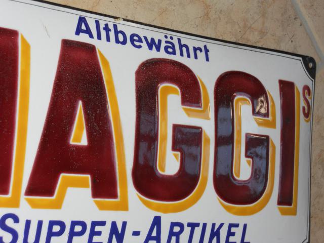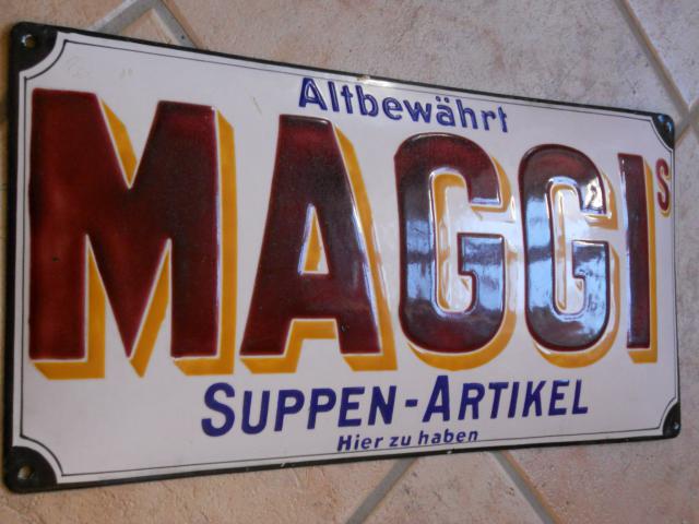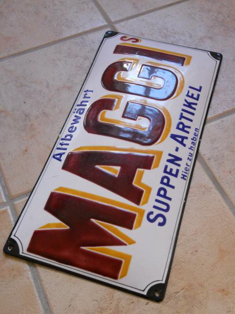 Würde gerne dieses Maggi Schild vertauschen gegen ein anderes Schild oder Schriftschild oder gegen Papier. Das Schild ist die ganz dick schablonierte Version auch als Maggi Praline bekannt, wäre ein Nuller bis Minuseinser, wenn nicht diese weissen wahrscheinlich herstellungsbedingten Sprenklungen im M, A und G wären. Trotzdem in dem zustand muss man es erstmal finden 🙂 Im I Emailblase.