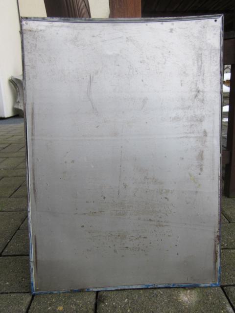 Gestern kam es dann an und ich staunte nicht schlecht, was da zum Vorschein kam. Der Schild ist eindeutig händisch mit Lackfarbe hergestellt worden. Bei den Motivteilen wurden Schablonen und teilweise Siebdrucktechnik verwendet. Das Ganze befindet sich dann noch auf einem Blechträger, der zuvor offensichtlich mit einem anderen Motiv bedruckt war (zu erkennen an dem umgepfalzten Rand auf der Rückseite, dort sind auch noch Reste einer Herstellerbezeichung, eine Reklamrfabrik in Bombay, zu finden.)