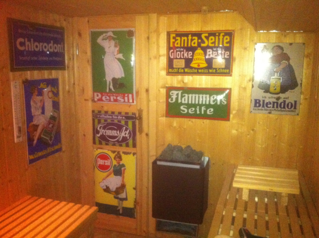 Die Schilder sind ein gelugener Kontrapunkt zu der sonst sehr „holzigen“ Atmosphäre einer üblichen Sauna, Kompliment! So ein gibt es vermutlich kein zweites Mal…