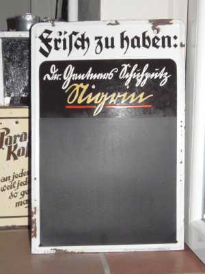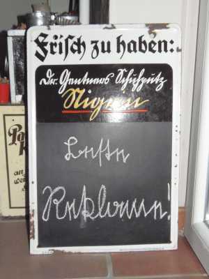 Der Eine oder Andere wird sich vielleicht noch an die Nigrin-Schreibtafel erinnern (http://www.schilderjagd.de/?p=53562). Habe mich ihrer angenommen, jetzt kann man sie wieder gut beschreiben. Wie war das noch mit dem Sütterlin? Ist ja schon ein paar Jahre her… Unsereins musste das noch auf der Grundschule lernen, aber das ist lange her, und seitdem hat man das nicht mehr gebraucht. Also möge man die ungelenke Schrift entschuldigen. 4, setzen!