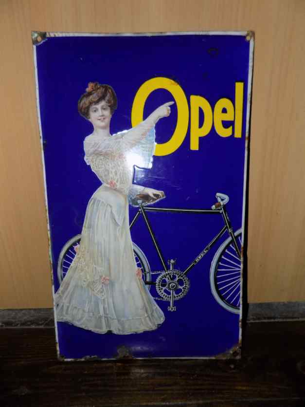 at the 1887 opel started to built „niederräder“/safeties but i found no models before 1910 that fits with the bike shown on the sign.
